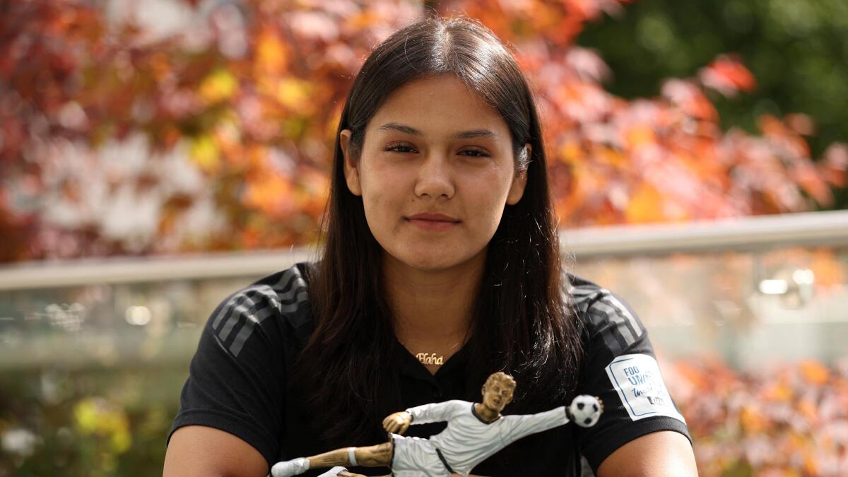 Safdari held onto a goalkeeping trophy and an Afghan shirt, which her parents managed to send her.