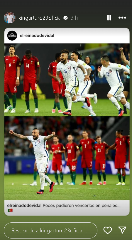 In his Instagram Story, Vidal reposted a photo from the 2017 FIFA Confederations Cup that showed him celebrating after Chile’s dramatic penalty shootout win over Portugal. The image featured Cristiano Ronaldo in the background and was accompanied by the caption: “Few could beat them on penalties…” The reference was crystal clear—and unmistakably cheeky.