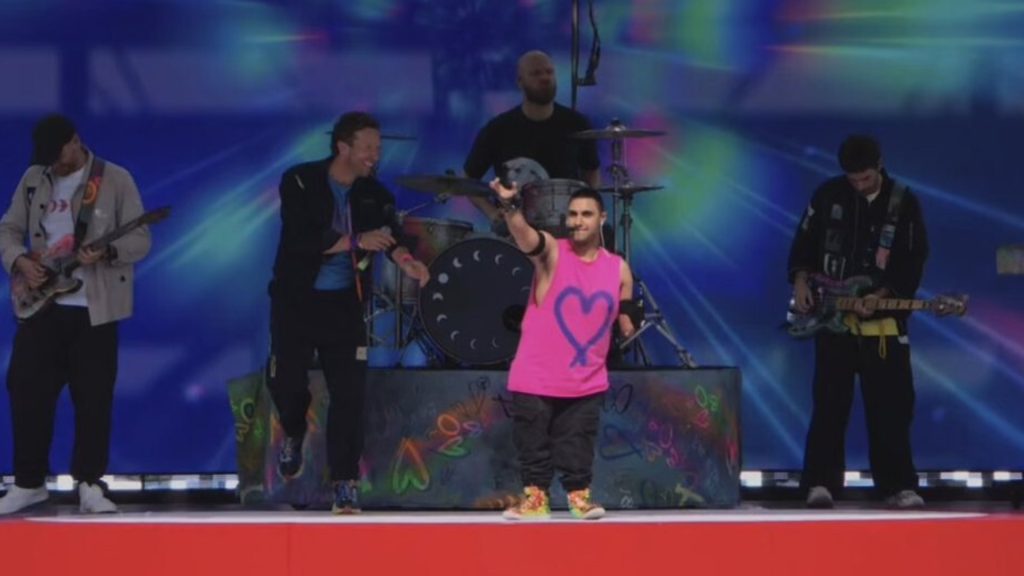Emmanuel Kelly and Coldplay at the FIFA Club World Cup halftime show in 2025. (Source: @Plaantik)