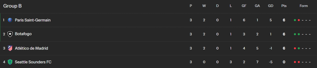 With Matchday 3 of Group B on the books, we take a look at the final positions of PSG, Botafogo, Atletico Madrid, and Seattle Sounders in the FIFA Club World Cup 2025 group stage.