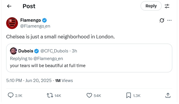 But Flamengo’s win wasn’t just about the on-field performance. After the final whistle, the club’s official X (formerly Twitter) account took a shot at Chelsea with a pointed message, drawing attention from fans around the world.