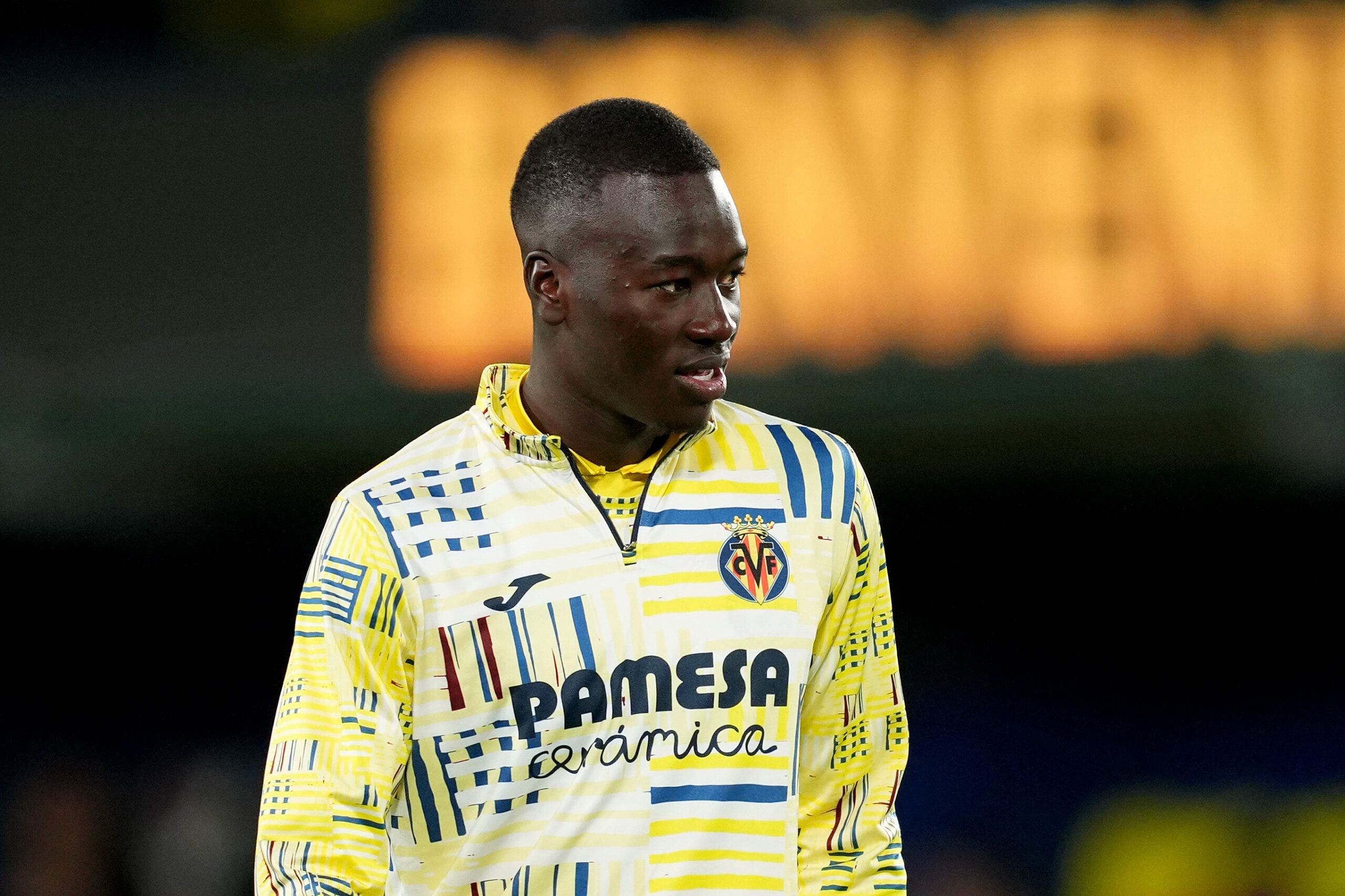 VILLARREAL, SPAIN – JANUARY 24: Pape Gueye of Villarreal CF warms up prior to the LaLiga EA Sports match between Villarreal CF and Real Madrid CF at Estadio de la Ceramica on January 24, 2026 in Villarreal, Spain. (Photo by Alex Caparros/Getty Images)